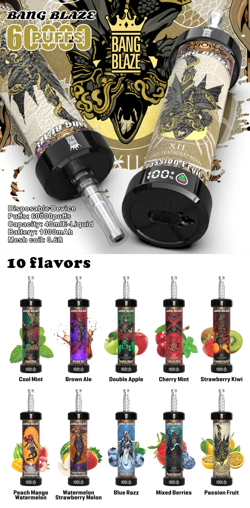 Home > Disposable Vape > Bang Blaze Shisha 60000 60K Puffs EU Warehouse Disposable Vape Shop Original Factory Smart Screen
