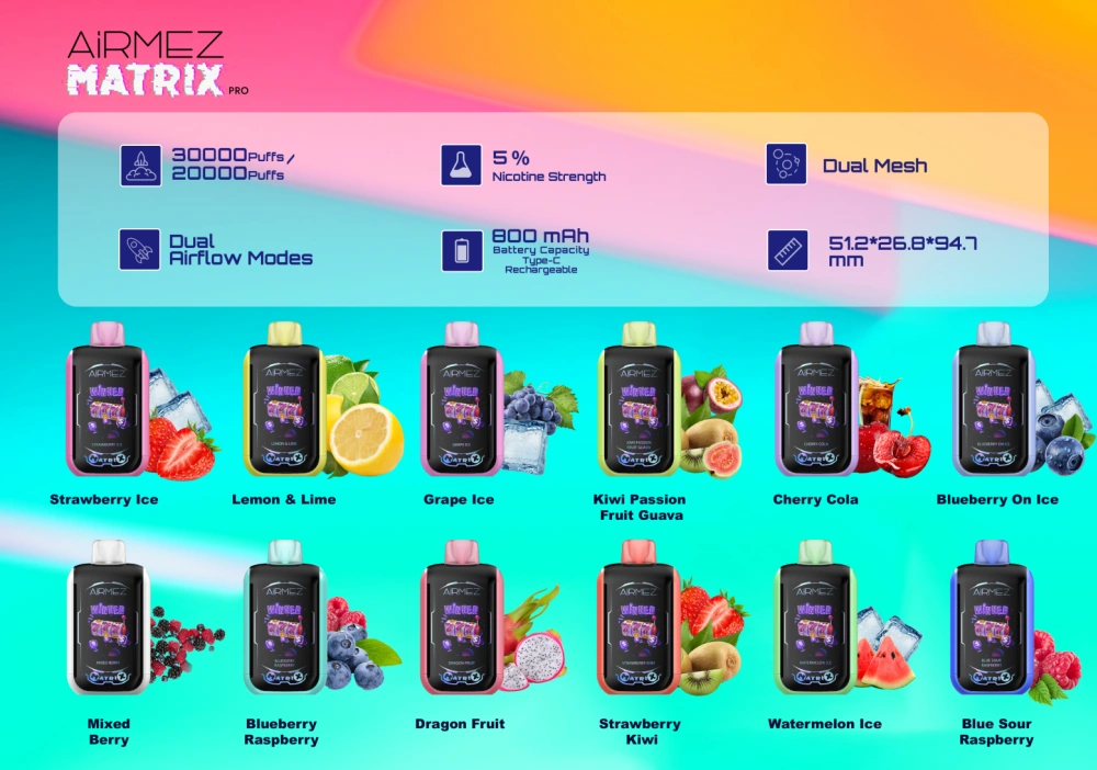 EU Warehouse Airmez Matrix Pro 30000 Puffs Full Smart Screen Disposable Vape Wholesale Puff 30k Touch Control