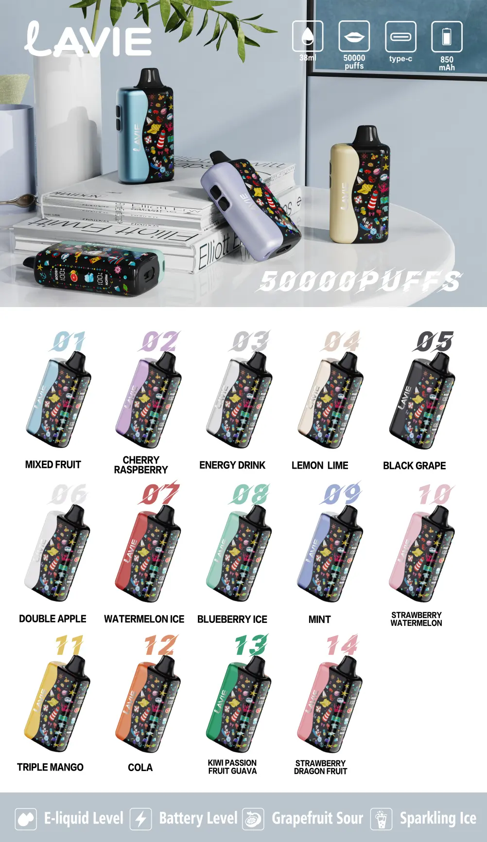Lavie 50000 50K Puffs Best Disposable Vape Shop Electronic Cigarette Vivid Display Screen