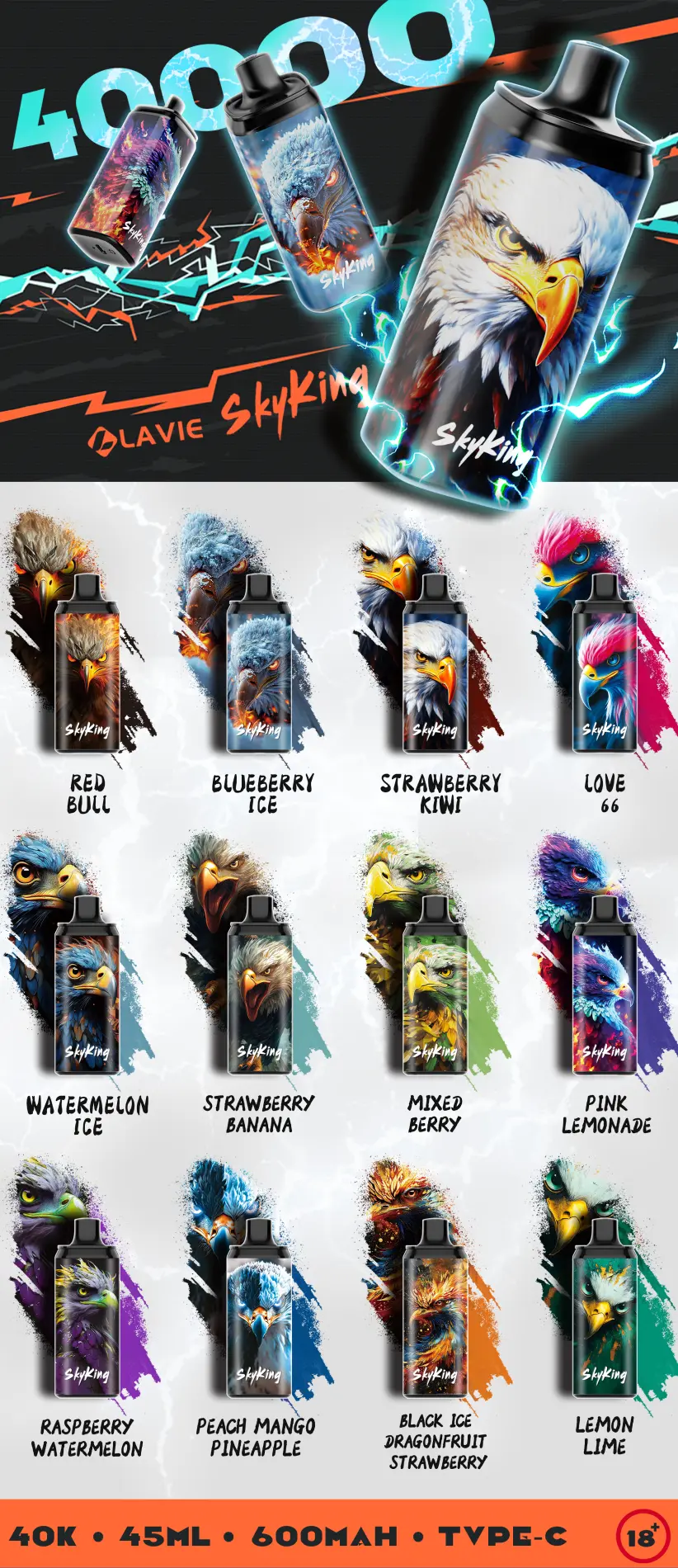 - Sleek Design: The Lavie Skyking 40000 Puffs packs massive capacity into a lightweight, pocket-sized body designed for all-day comfort.